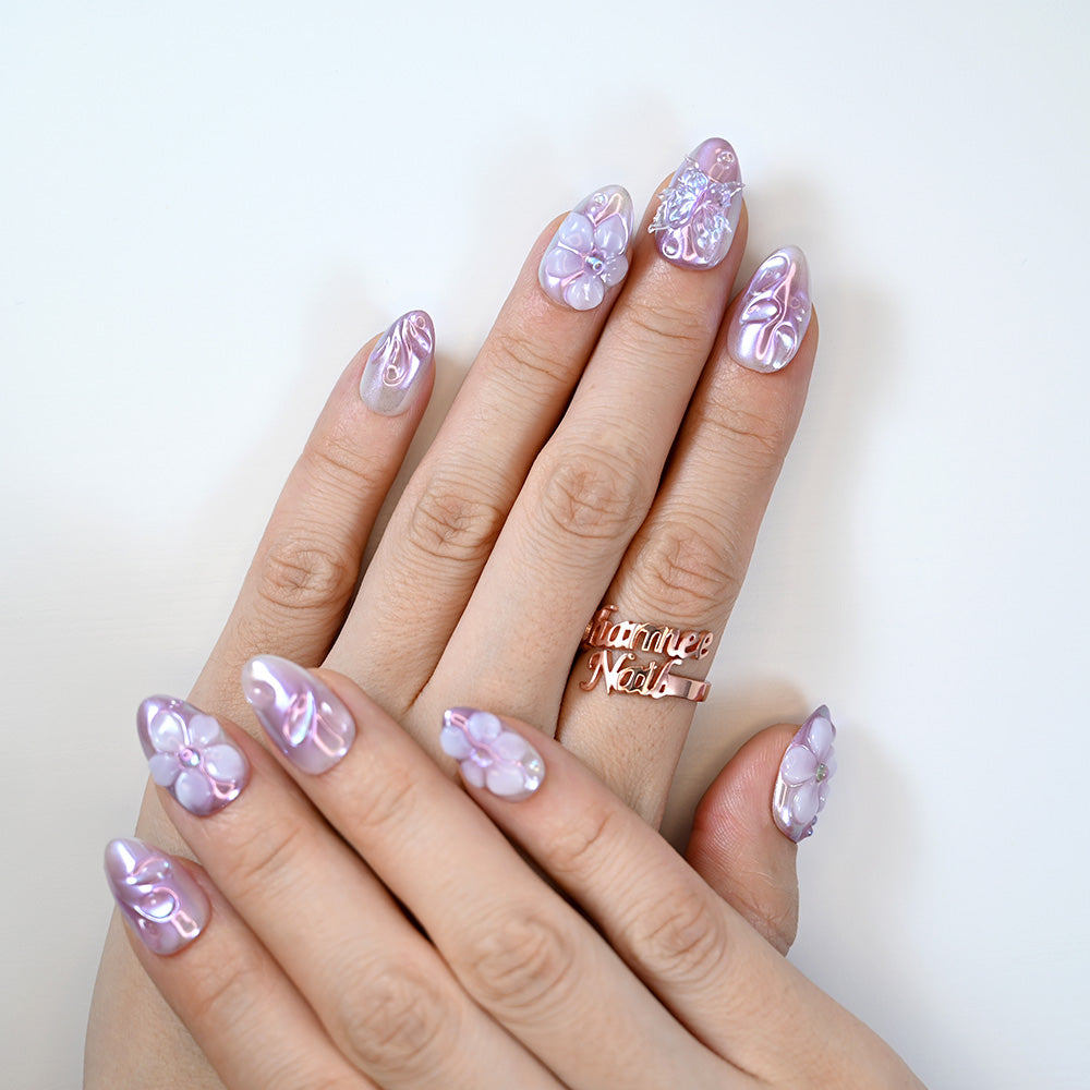 A whimsical blend of lilac chrome and 3D butterfly accents, inspired by garden fairies and delicate spring skies. Soft, magical, and perfect for a romantic touch.