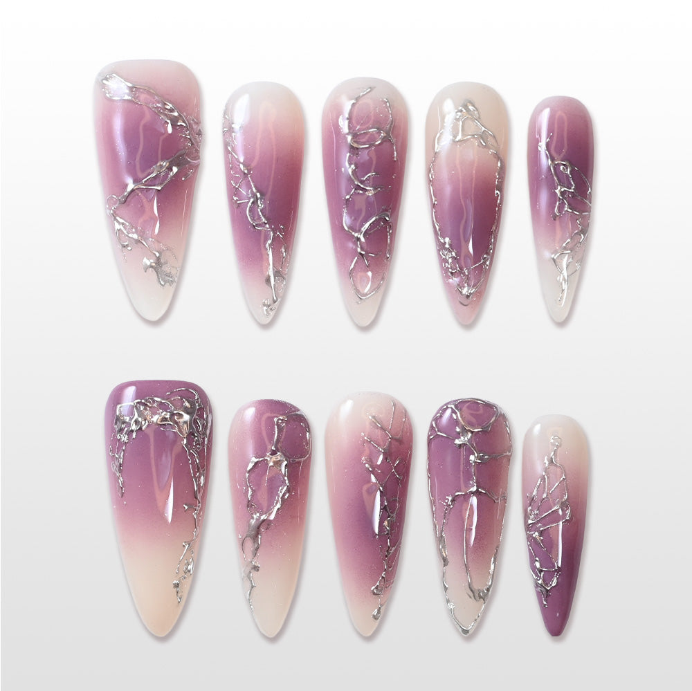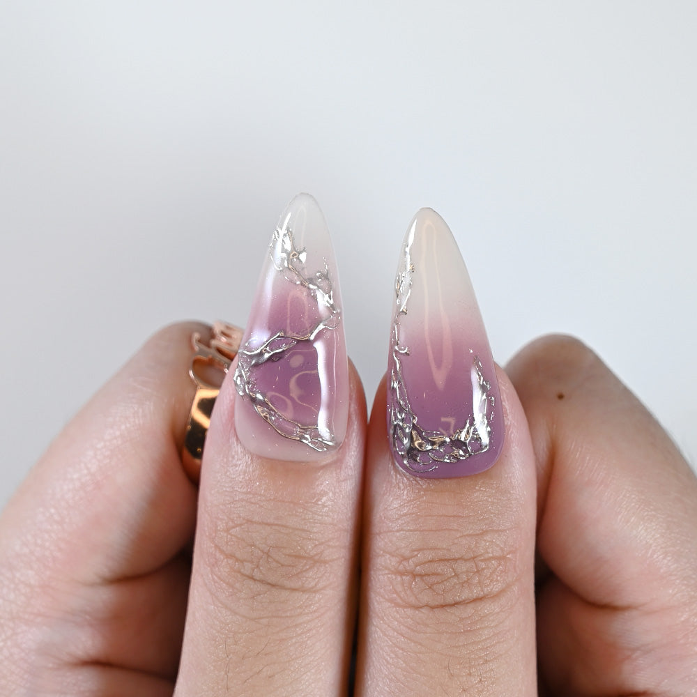 Inspired by twilight skies and climbing vines, this design blends purple ombré with silver chrome branches for an elegant, mystic vibe.